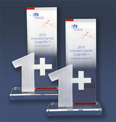 Als progressives Unternehmen können Sie sich mit Ihren herausragenden Leistungen für den „Innovationspreis Losgröße 1+“ kostenlos bewerben.